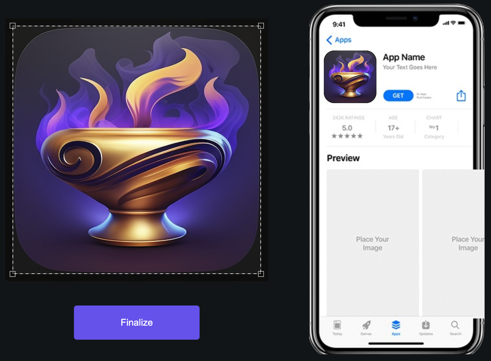 Once our AI generates your stunning icon designs, it's time to take a closer look and make them truly yours. Our App Icon Generator provides you with the tools to preview and adjust your designs effortlessly. Crop them to fit your specific requirements and visualize how they will appear in real-world mockups.